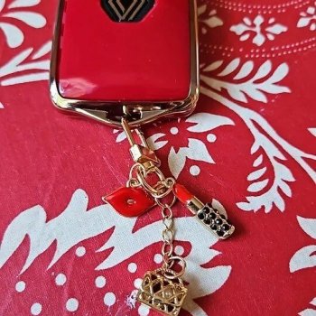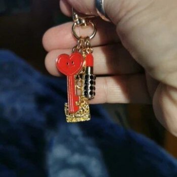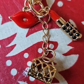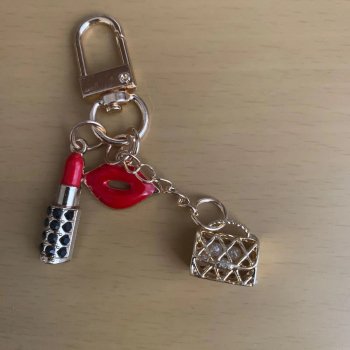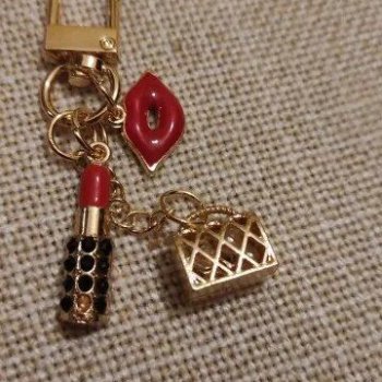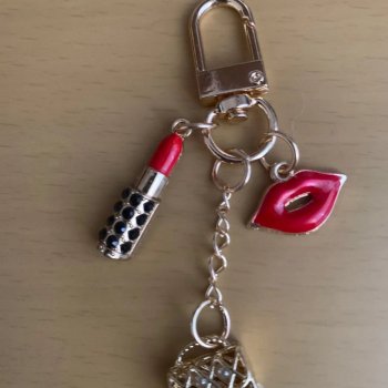 This keychain is adorable, feeling sturdy in hand. Though I haven't had it for long, I'm already taken with its bright red color, sparkling details, and the mix of a lipstick, heart, and bag.